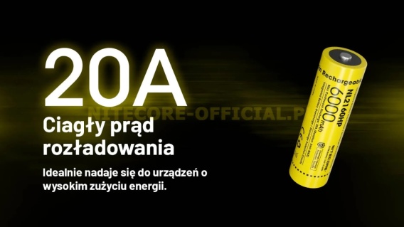 • Nitecore Akumulator 21700 - 6000mAh 20A 3,6V - 3,7V NL2160HP